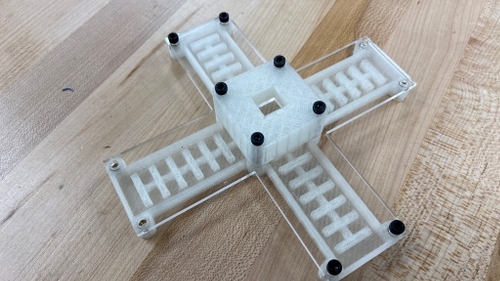 The griper was made with Ecoflex 00-30, a silicone ruber that is commonly used in the field of soft robotics research. The molds are designed and manufactured at Tufts Nolop Makerspace.